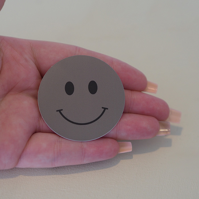 Tämä tarra on valmistettu kestävästä vinyylistä, joka kiinnittyy tasaiselle pinnalle tukevasti mutta on tarvittaessa myös poistettavissa. Liimapinta ei jätä jälkiä, joten tarra on turvallinen vaihtoehto laitteiden kuorille. Tarran pintaa suojaa ohut laminaatti, mikä tekee siitä hieman kulutusta ja kosteutta kestävän.