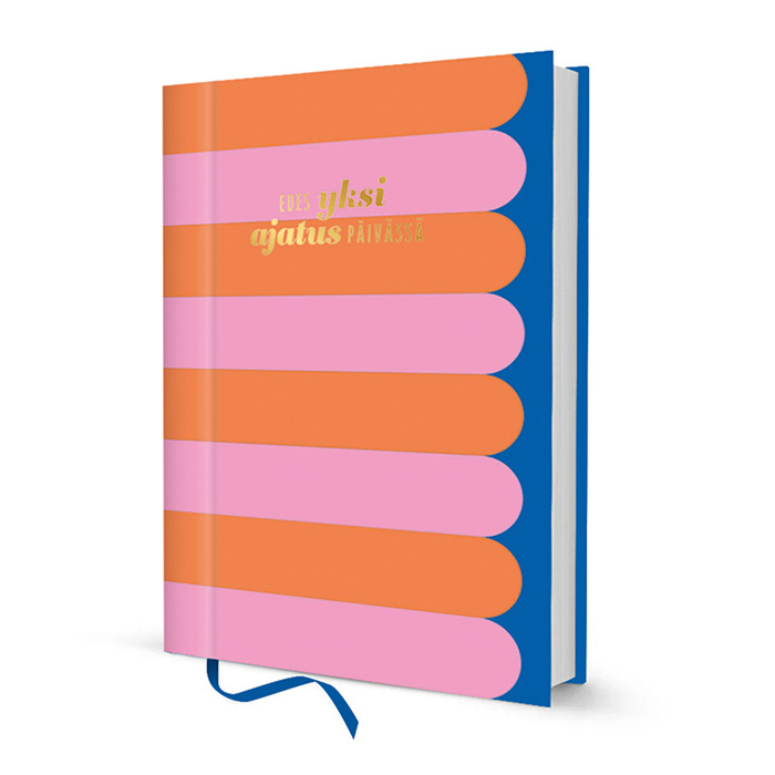 Kirjan kannessa on raitakuosi pinkin, oranssin ja sinisen sävyillä, sekä kullan värinen folioitu teksti "Edes yksi ajatus päivässä".