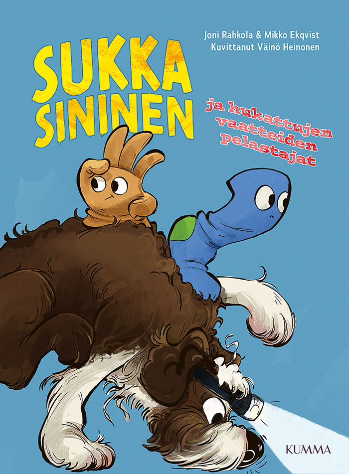 Sukka Sininen ja hukattujen vaatteiden pelastajat jatkaa hurmaavien Sukka Sinisen, Naava-koiran ja niiden ystävien seikkailuja. Kutkuttava tarina henkiin heränneistä vaatteista, kasveista ja esineistä pitää otteessaan loppuhuipennukseen asti — ja osoittaa samalla, miten tärkeää muiden auttaminen on, oli kyse sitten ystävistä tai täysin tuntemattomista hanskoista.