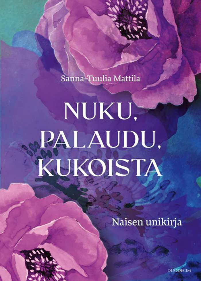 Nuku, palaudu, kukoista - Naisen unikirja kartoittaa näitä vaiheita nuoruudesta ja raskausajasta ruuhkavuosien ja vaihdevuosien kautta ikääntymiseen, käy läpi kussakin vaiheessa tyypillisiä uniongelmia ja tarjoaa konkreettisia ohjeita niiden ratkaisemiseksi.