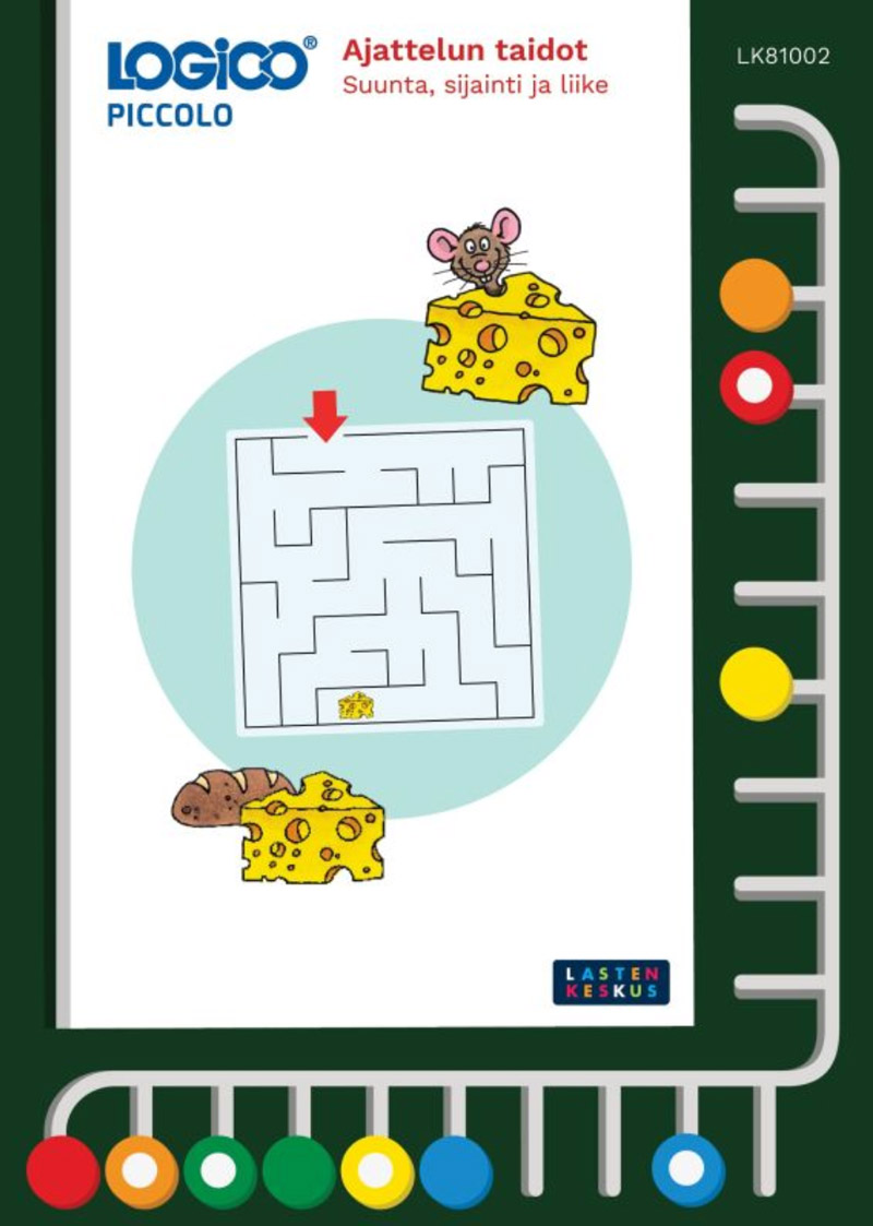 Värikkäässä korttisarjassa harjoitellaan tilan, sijainnin, liikkeen sekä avaruudellisten suhteiden hahmottamista.